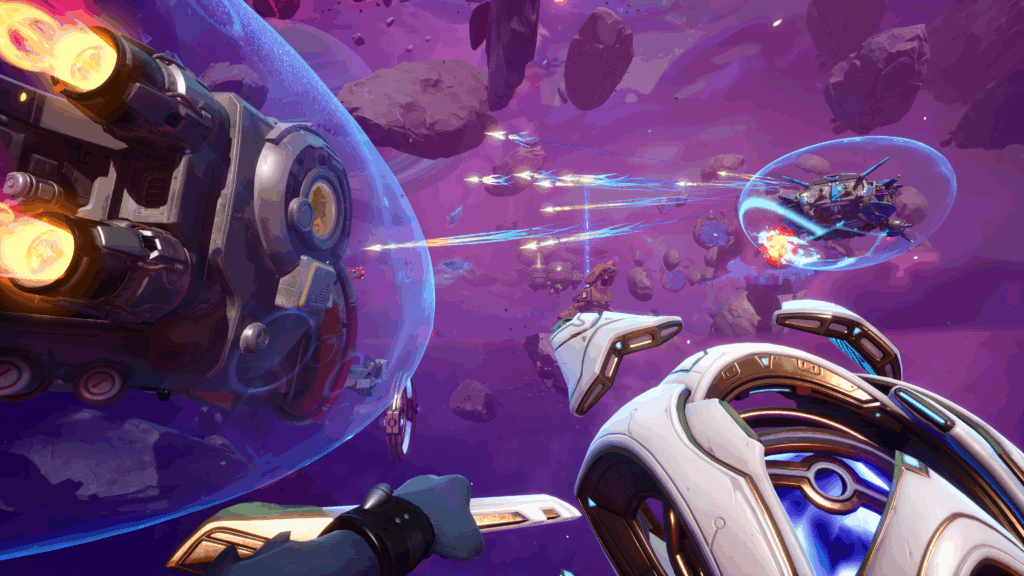 A natureza “FPS espacial” e o ambiente “hostil e imprevisível” sugerem que o jogo provavelmente investe em visuais imersivos, com detalhes em naves, explosões e os próprios perigos ambientais como asteroides de fogo e tempestades cósmicas.