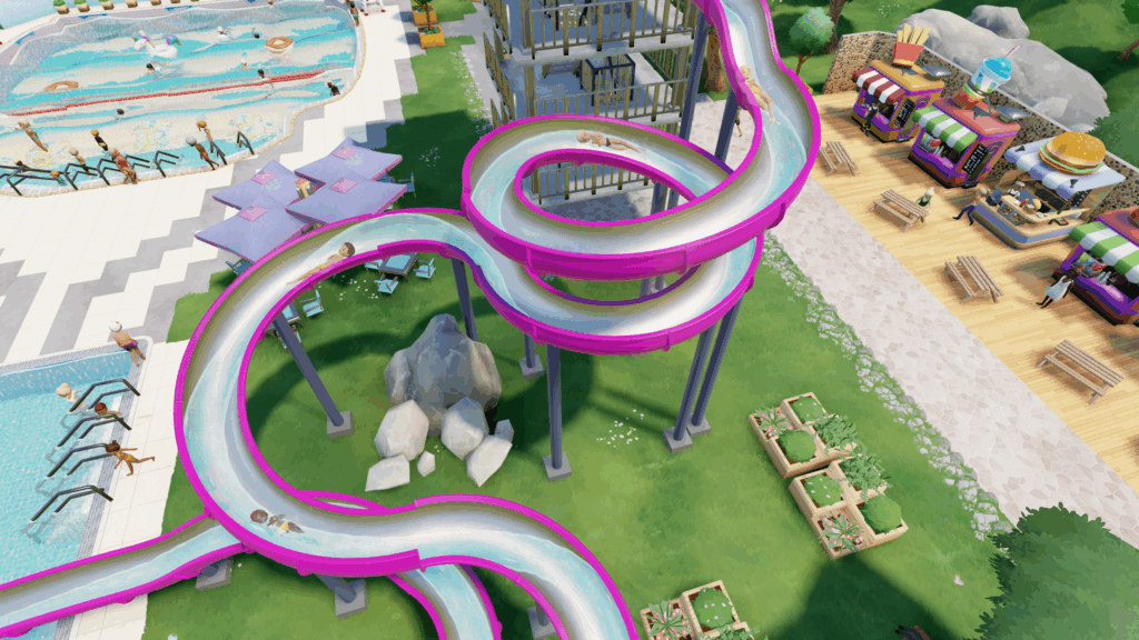 A equipe de desenvolvimento leva você aos bastidores da construção de toboáguas, revelando as diversas maneiras de personalizar seu parque aquático. Cada variante vem com opções de design especializadas que impactam a dinâmica, velocidade e segurança do toboágua.