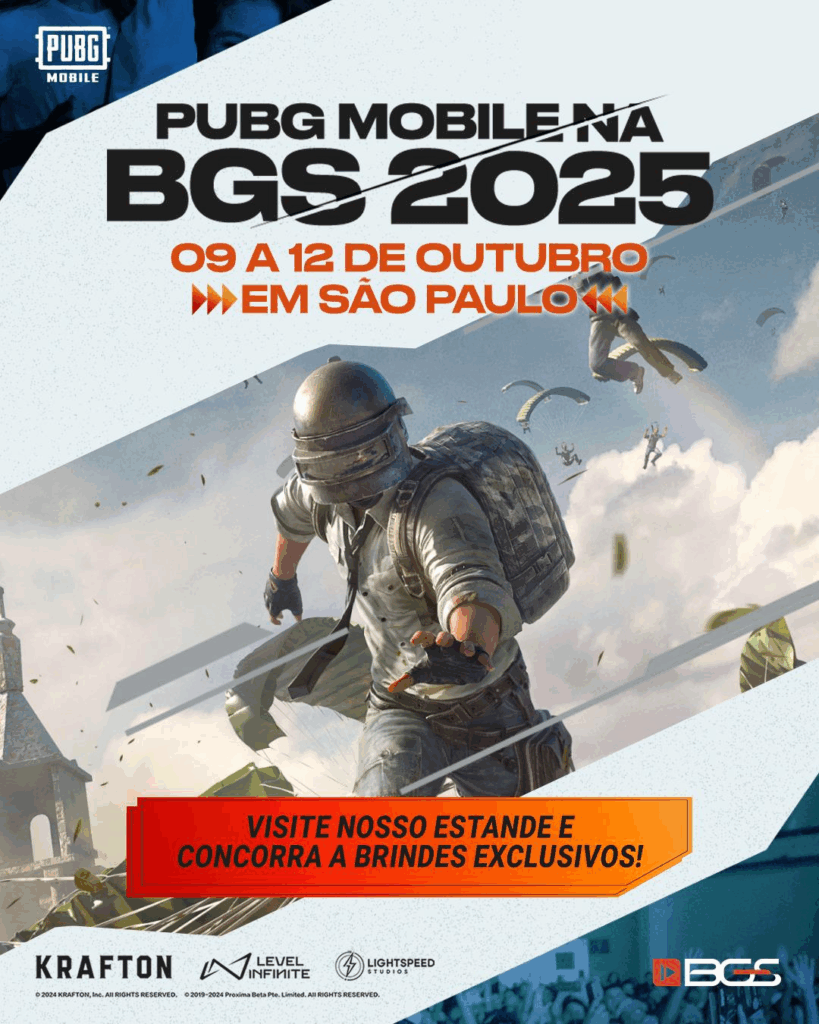 Além disso, PUBG MOBILE está oferecendo um desconto exclusivo de 5% na compra do ingresso para a Brasil Game Show 2025. Basta utilizar o cupom PUBGM5 até o dia 8 de outubro para aproveitar todas as atrações do evento. Anote na agenda: a BGS acontecerá de 9 a 12 de outubro de 2025, no Distrito Anhembi, em São Paulo. Não perca essa oportunidade!