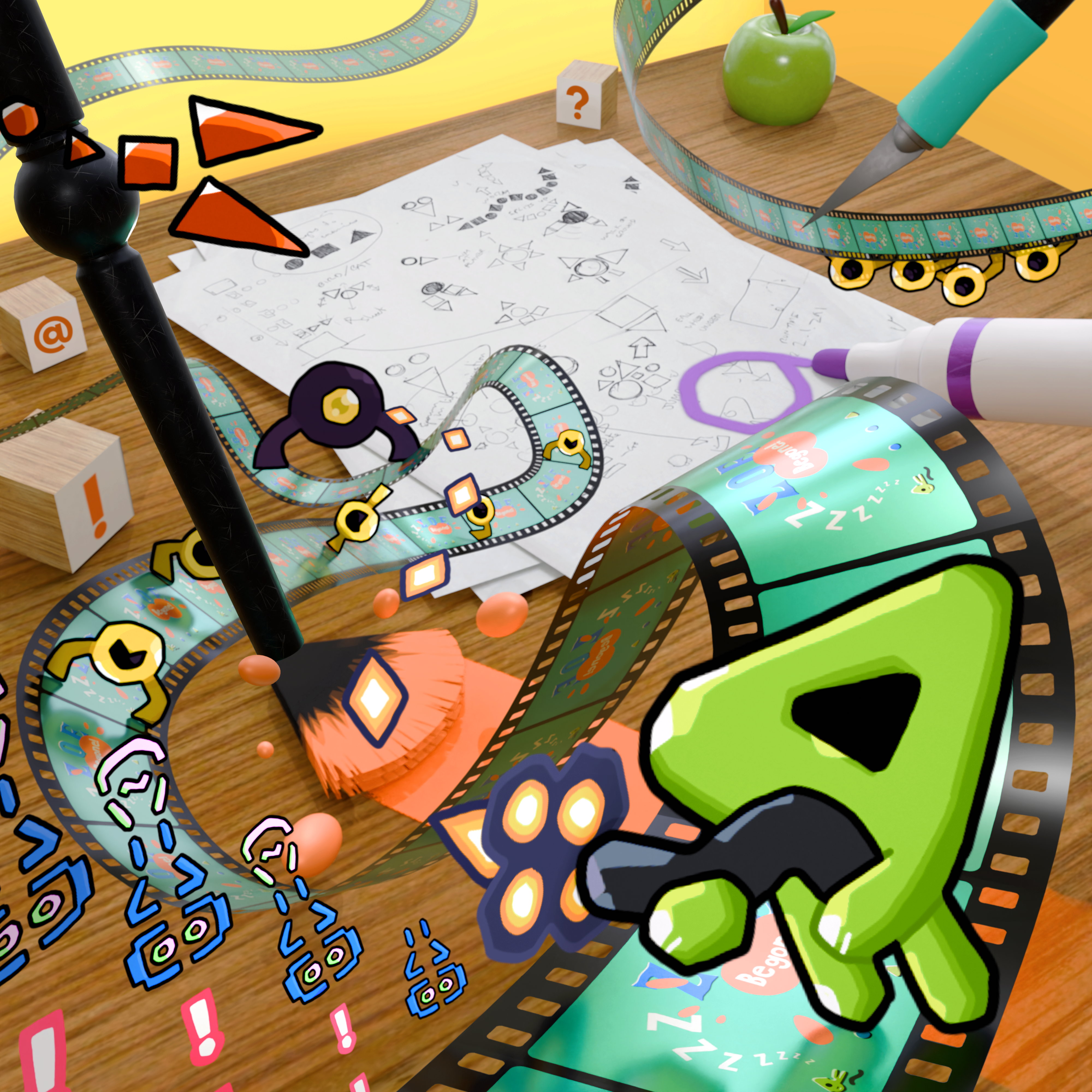 Em ZOE Begone!, cada quadro é uma nova ameaça, com o Animator torcendo o rolo para criar perigos únicos. Zoe deve lutar contra a imaginação inquieta do Animator para alcançar seu objetivo final: retornar ao seu sono pacífico. Os inimigos desenhados à mão ganham vida nas mãos do Animator, que os cria para derrubar Zoe.