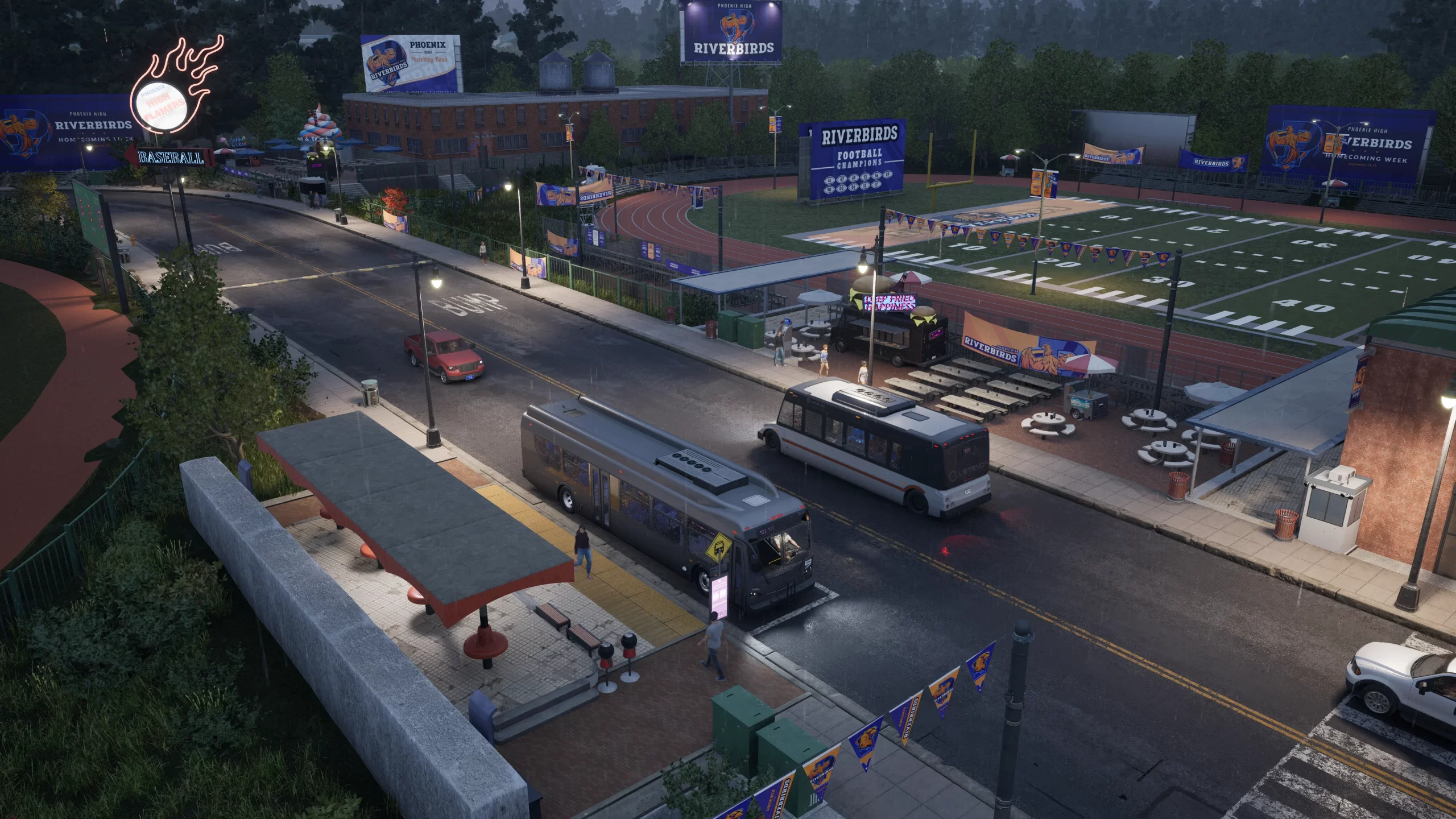 - Dirija Ícones Americanos: Assuma o volante de ônibus de fabricantes dos Estados Unidos, como New Flyer e Blue Bird.