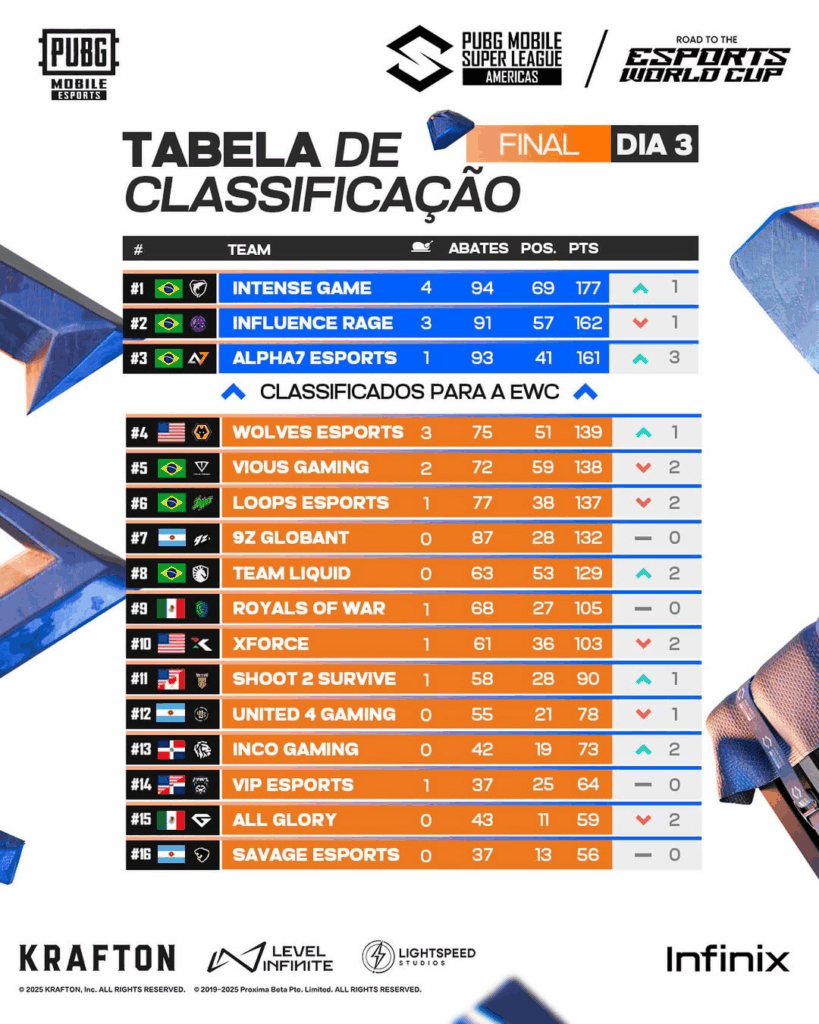 A vitória da Intense Game na PMSL Americas Spring 2025 não apenas consagra a equipe como campeã continental, mas também destaca o talento e a competitividade do cenário de esports brasileiro. Com representantes brasileiros brilhando na competição, a comunidade de jogos eletrônicos do país tem muito a comemorar. Parabéns à Intense Game e aos demais competidores por suas performances excepcionais!