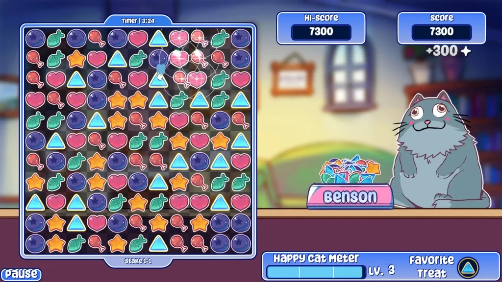 No jogo, a mecânica é simples: combinar peças para encher as tigelas com petiscos e manter os gatos bem alimentados. Quanto mais você alimenta, mais gatos se juntam a você. Mas atenção ao relógio, pois o tempo não para e os gatinhos não gostam de esperar.