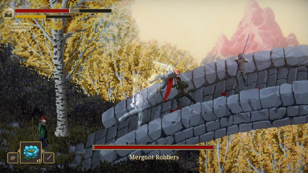 Segundo Dimitris Tsatsis, programador da Poor Locke, “Crimson Capes foi construído em torno de um combate deliberado que recompensa iniciativa, precisão e pensamento rápido, trazendo a tensão e satisfação da experiência Souls para o 2D”.