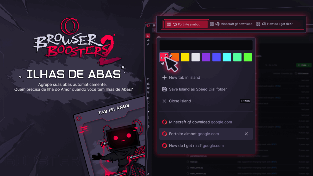 Além dos cursores animados, a atualização Browser Booster traz melhorias significativas para o Opera GX. Agora, os usuários podem desfrutar das Ilhas de Abas na versão estável do navegador, permitindo uma organização mais eficiente de suas atividades online. As abas podem ser nomeadas, coloridas e salvas para acesso rápido, facilitando a navegação diária.