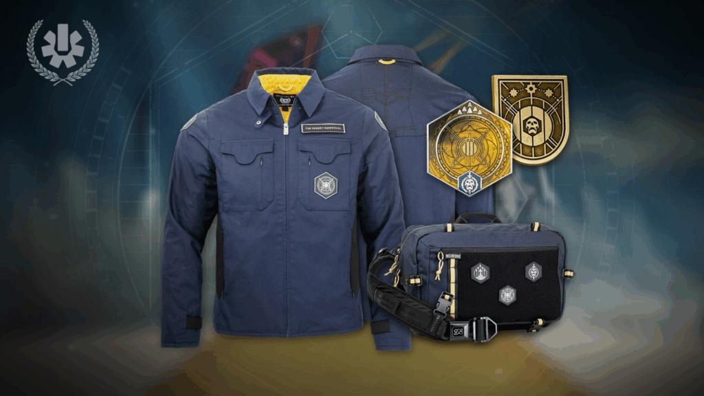 Os jogadores que completarem o raid “Deserto Perpétuo” terão a oportunidade de adquirir produtos exclusivos das Bungie Rewards para exibir sua conquista. Entre as recompensas disponíveis estão a Jaqueta do Raid, a Bolsa Kadet Max Sling da Chrome Industries, o Pin do Raid e o Pin do Título Atemporal.