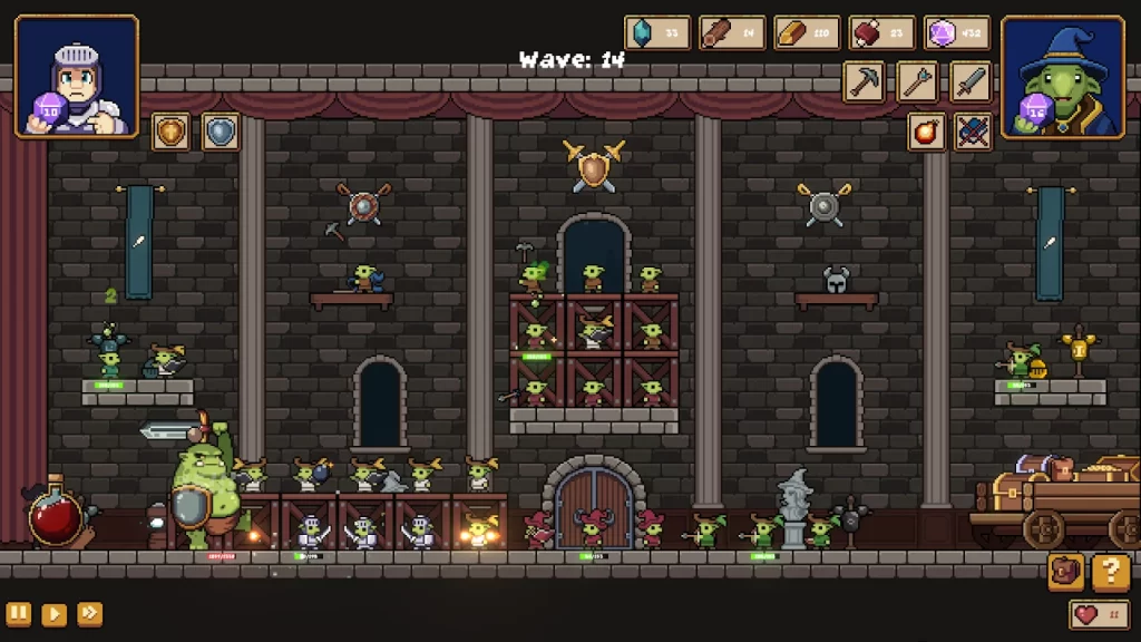 - Gerencie seu Den Goblin: Equilibre a contratação de trabalhadores e a construção de defesas.