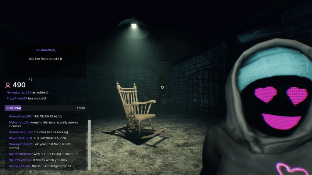 A principal mecânica do jogo é a integração do chat real do Twitch, que ativa eventos dentro do jogo em tempo real. Mensagens, emotes e spam dos espectadores influenciam diretamente a jogabilidade. Jogadores sem conta no Twitch também podem usar um chat simulado para vivenciar a experiência completa.