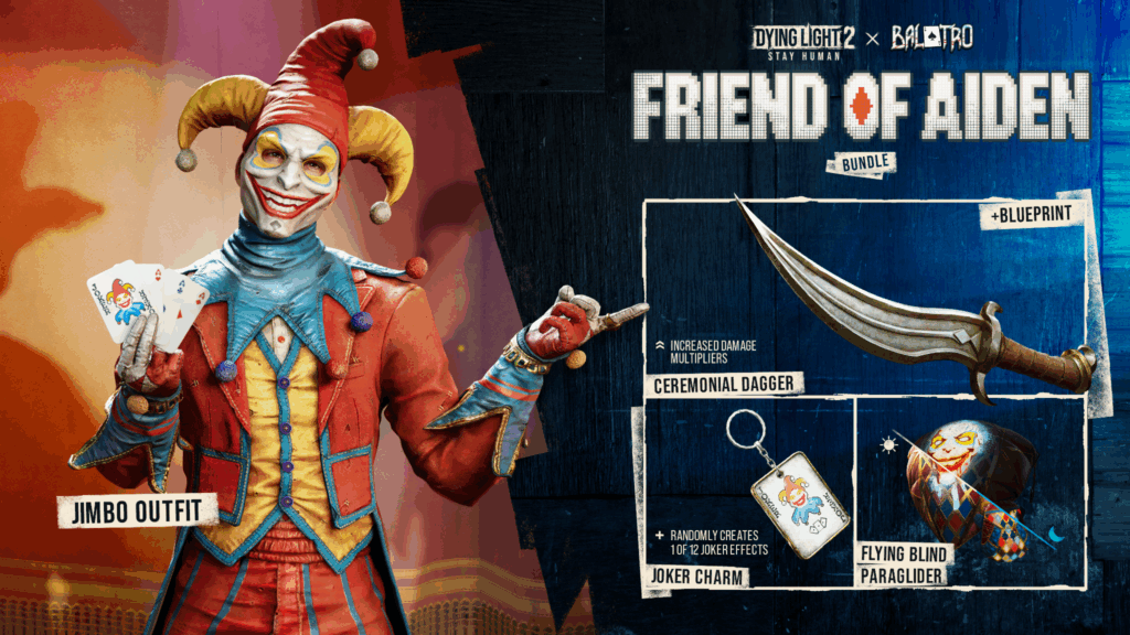 Além disso, a Techland está lançando uma atualização de verão para Dying Light 2: Stay Human, cumprindo a promessa de suporte contínuo ao jogo. Prepare-se para o crossover Dying Light 2 x Balatro: Friend of Aiden, que traz novas missões secundárias e itens divertidos para os jogadores.