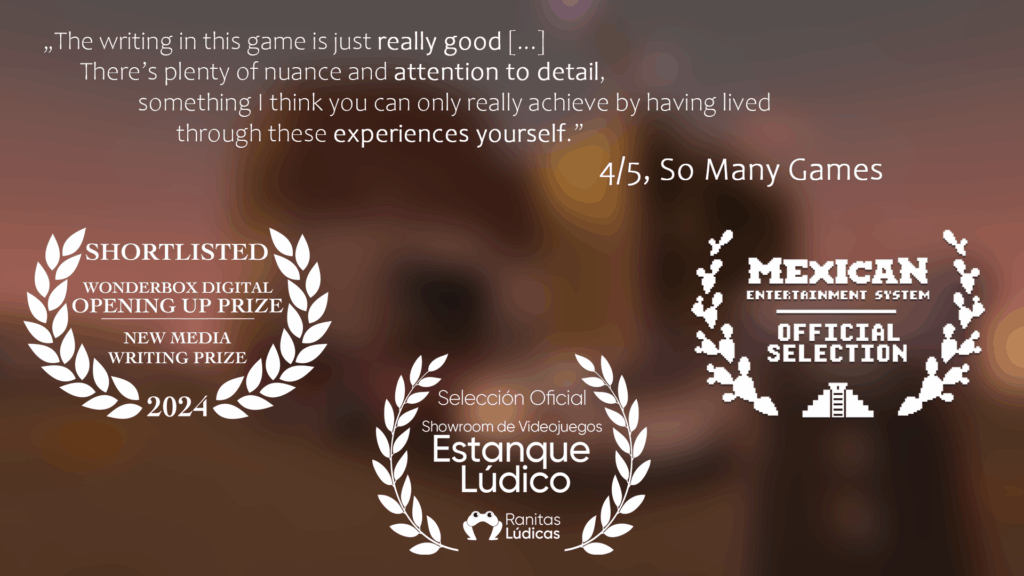 O jogo recebeu uma avaliação de 4/5 da So Many Games, elogiando sua narrativa pessoal e nuances emocionais. Além disso, foi destaque na coleção Mexican Entertainment System no Steam e no evento Ranitas Lúdicas, celebrando vozes emergentes no desenvolvimento de jogos mexicanos.