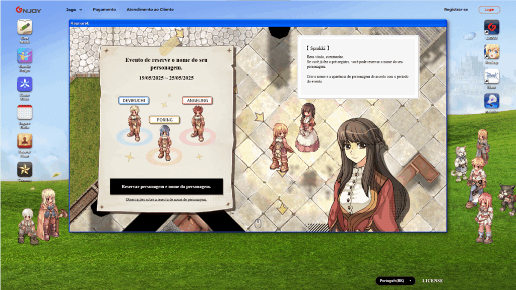 O evento não se resume apenas a criar um personagem, mas marca o início de uma jornada, uma lenda, uma história. Seja um dos primeiros heróis a adentrar a nova era de Ragnarök Online LATAM e deixe sua marca antes da chegada do restante do mundo. Durante a criação do personagem, os jogadores podem escolher entre três idiomas disponíveis: Inglês, Português-BR ou Espanhol-LATAM, sem afetar a conta ou o avatar no jogo.