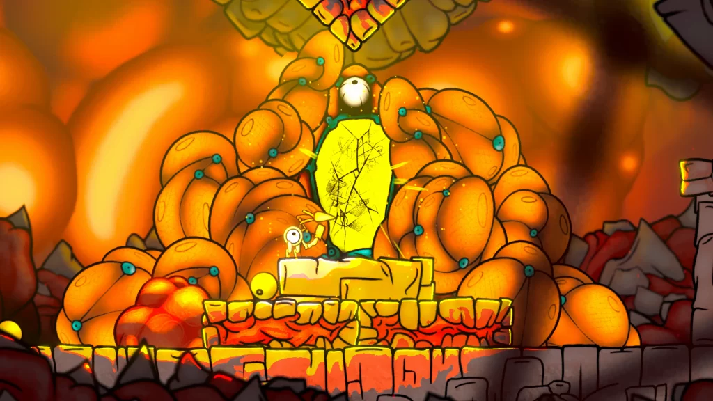 Todo o mundo grotesco de Evolvania foi desenhado à mão por um único desenvolvedor, resultando em uma identidade visual marcante que combina detalhes vívidos com uma atmosfera inquietante. Os jogadores também poderão acessar a Creator’s Room, um editor de níveis que permite criar e compartilhar desafios personalizados.
