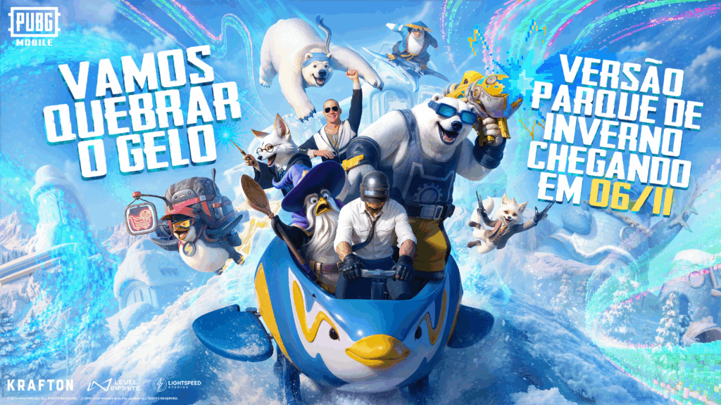 A Versão 4.1 do PUBG MOBILE traz o Parque de Inverno, um novo modo temático que transporta os jogadores para a Vila dos Pinguins, uma cidade coberta de neve construída por pinguins empreendedores. Prepare-se para explorar geleiras cintilantes, conhecer personagens encantadores e desfrutar de uma experiência caótica e divertida.