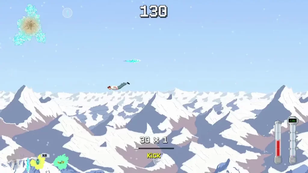 Durante a queda livre, é essencial aproveitar os itens ao seu redor, como peças quebradas, pertences dos passageiros e até mesmo cobras, para realizar acrobacias como backflips, saltos mortais e até mesmo o Worm. Encadeie o máximo de combos possível antes de tocar o solo! A demo do jogo apresenta dois níveis iniciais, cada um com desafios a serem completados para avançar.