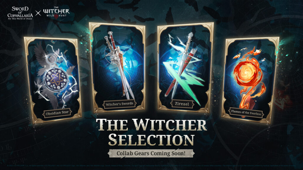 Durante o evento de colaboração, os jogadores de Sword of Convallaria também poderão obter novas armas inspiradas em The Witcher 3, como Zireael, a Obsidian Star, as Flames of the Fearless e as Witcher’s Swords, além de skins extras para Geralt, Yennefer e Triss.