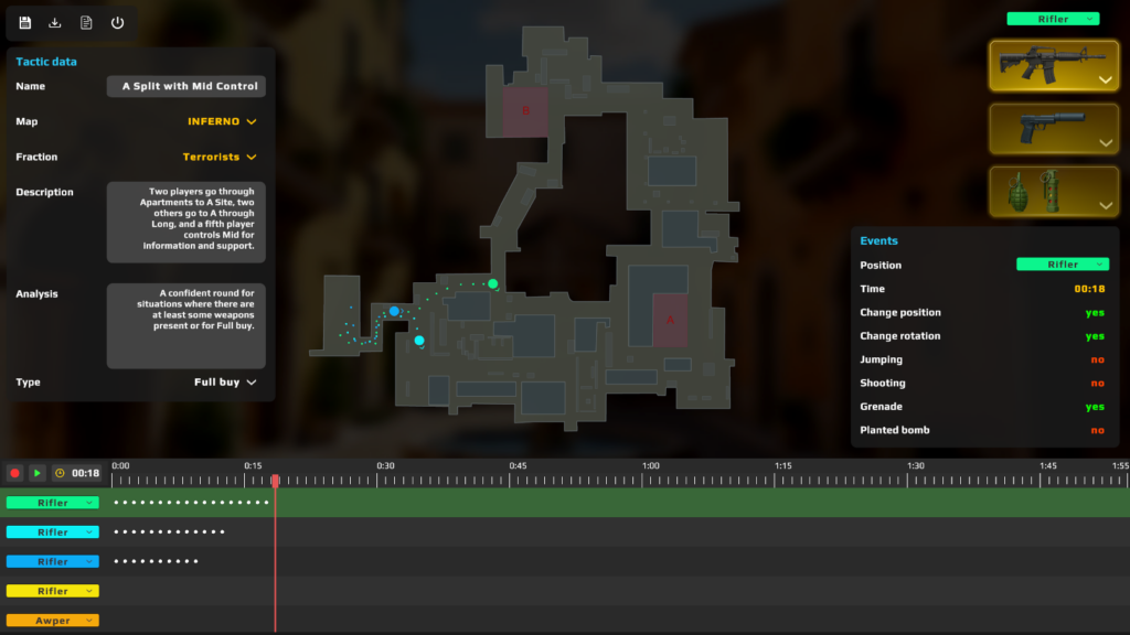 Com um motor de jogo semi-3D, os torneios ganham vida com interações táticas em constante evolução, escolhas de mapas, armas, uso de utilitários e forma dos jogadores. Os jogadores podem criar estratégias de longo prazo, desenvolver uma marca e gerenciar o ecossistema financeiro completo de uma organização de esports.