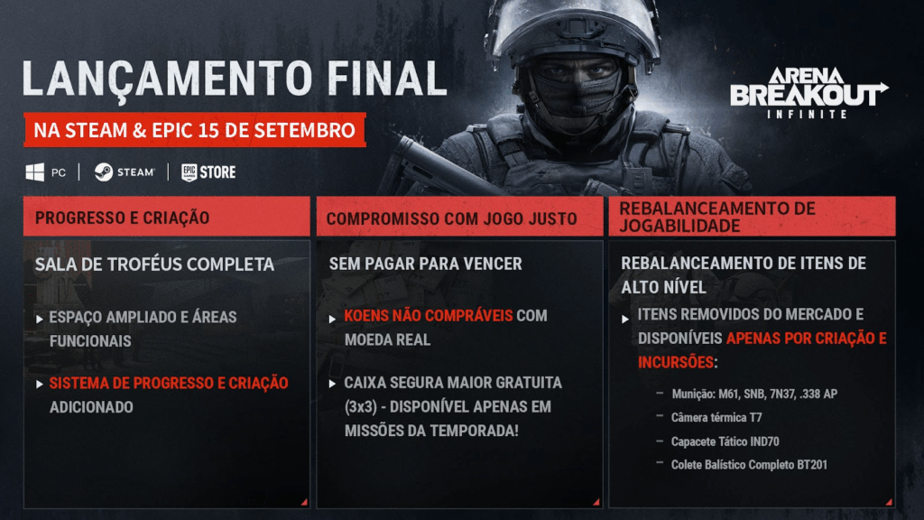 Arena Breakout: Infinite será lançado oficialmente no Steam em 15 de setembro.