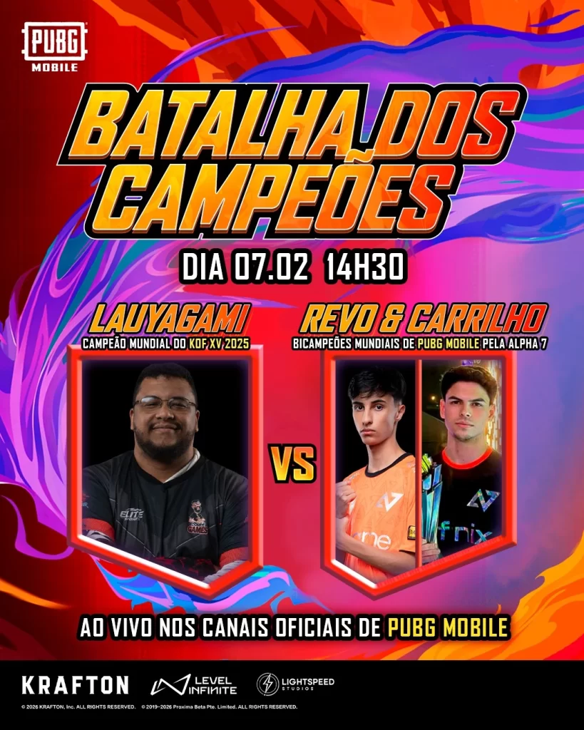 Em 2025, a Alpha7 Esports conquistou o título mundial no PMGC, enquanto Lauyagami se consagrou campeão de The King of Fighters XV. A live deste sábado promete reunir o melhor dos dois mundos, com desafios, interações e muita diversão para os fãs.