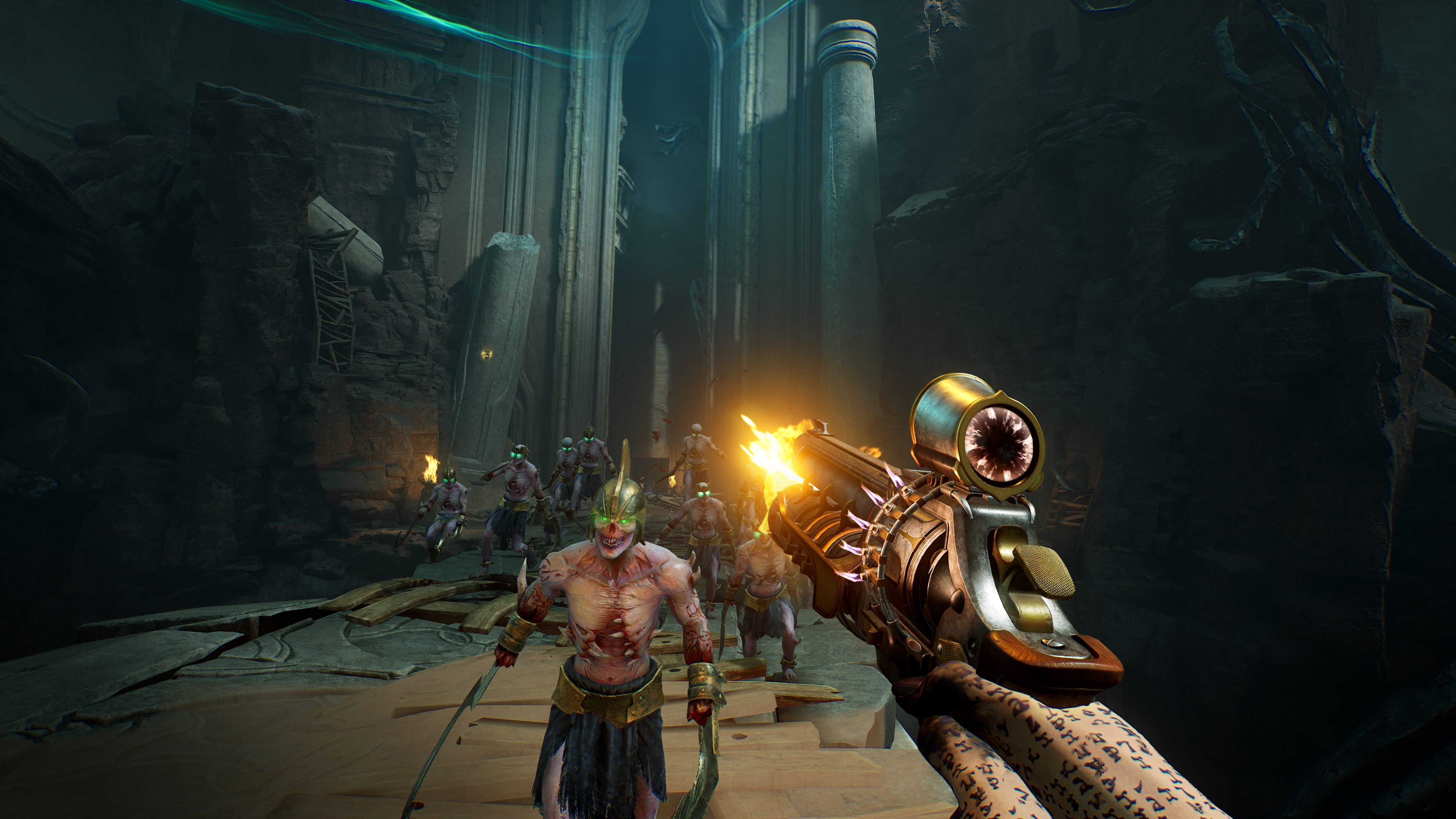 As armas desempenham um papel fundamental em Painkiller, com designs que combinam elementos clássicos da franquia com toques modernos. Uma novidade é a possibilidade de personalizar as melhorias das armas, permitindo combinações únicas que se adaptam a diferentes estilos de jogo. No modo cooperativo, essa personalização se torna ainda mais interessante ao combinar estratégias com os amigos.