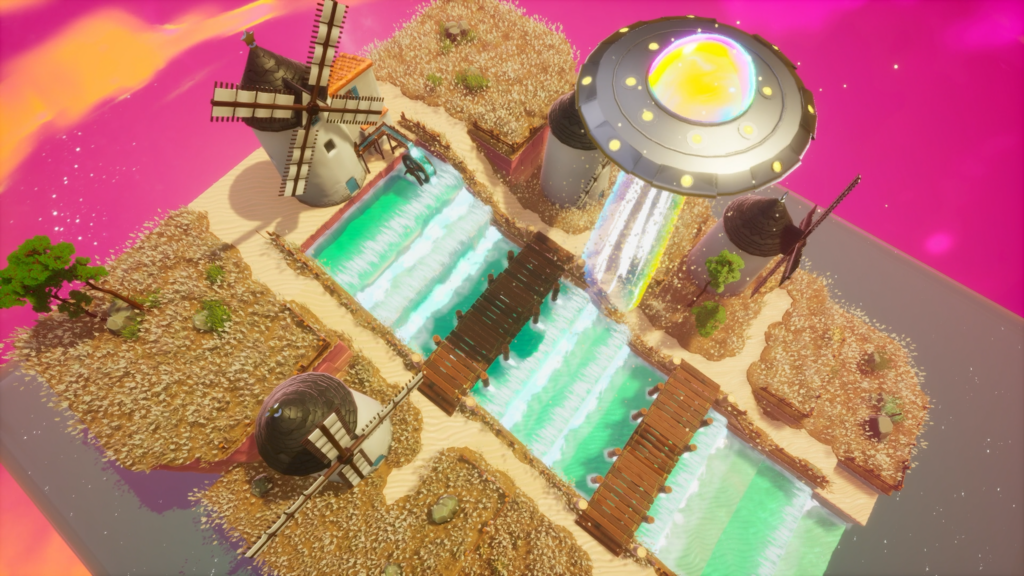 - Mundos coloridos construídos para competição e risadas