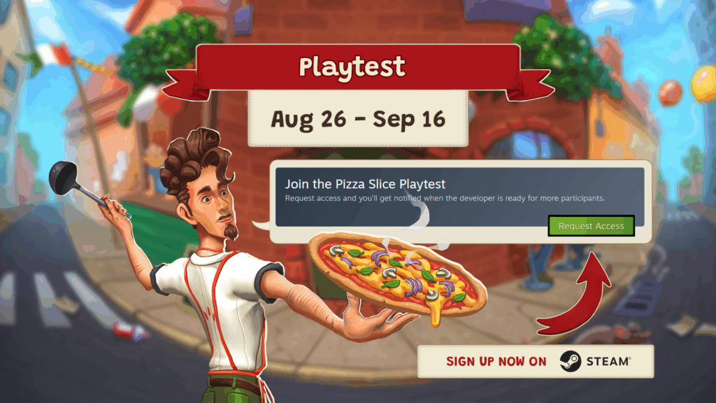Hoje começam os testes do jogo “Pizza Slice”! A Gaming Factory e a Quest Craft estão lançando o Steam Playtest do Pizza Slice, um jogo que promete uma aventura italiana autêntica. Se você sempre sonhou em gerenciar uma pizzaria italiana em Nova York, essa é a sua chance de se envolver no desenvolvimento do jogo.