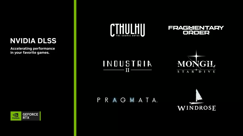 Além disso, novos títulos passam a contar com suporte à tecnologia DLSS nesta semana. Cthulhu: The Cosmic Abyss, INDUSTRIA 2, MONGIL: STAR DIVE e Windrose chegam com melhorias de desempenho e qualidade de imagem por meio do DLSS. Também foi anunciado o novo FPS tático de ficção científica Fragmentary Order, que será lançado com suporte ao DLSS 4.5.