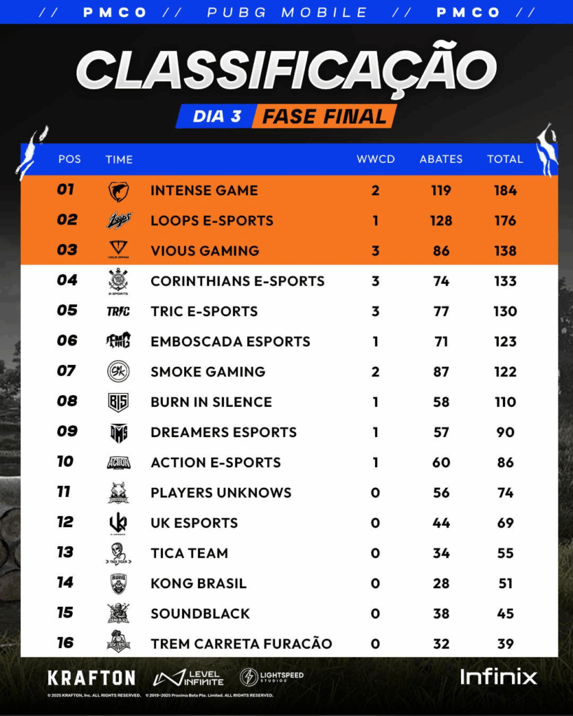 No último domingo, a Intense Game conquistou o título do PMCO 2025, garantindo não apenas o troféu, mas também a maior parte da premiação total de US$ 5 mil. Além disso, a equipe assegurou uma vaga na PUBG MOBILE Super League Américas Spring 2025, que será realizada no próximo mês em São Paulo.