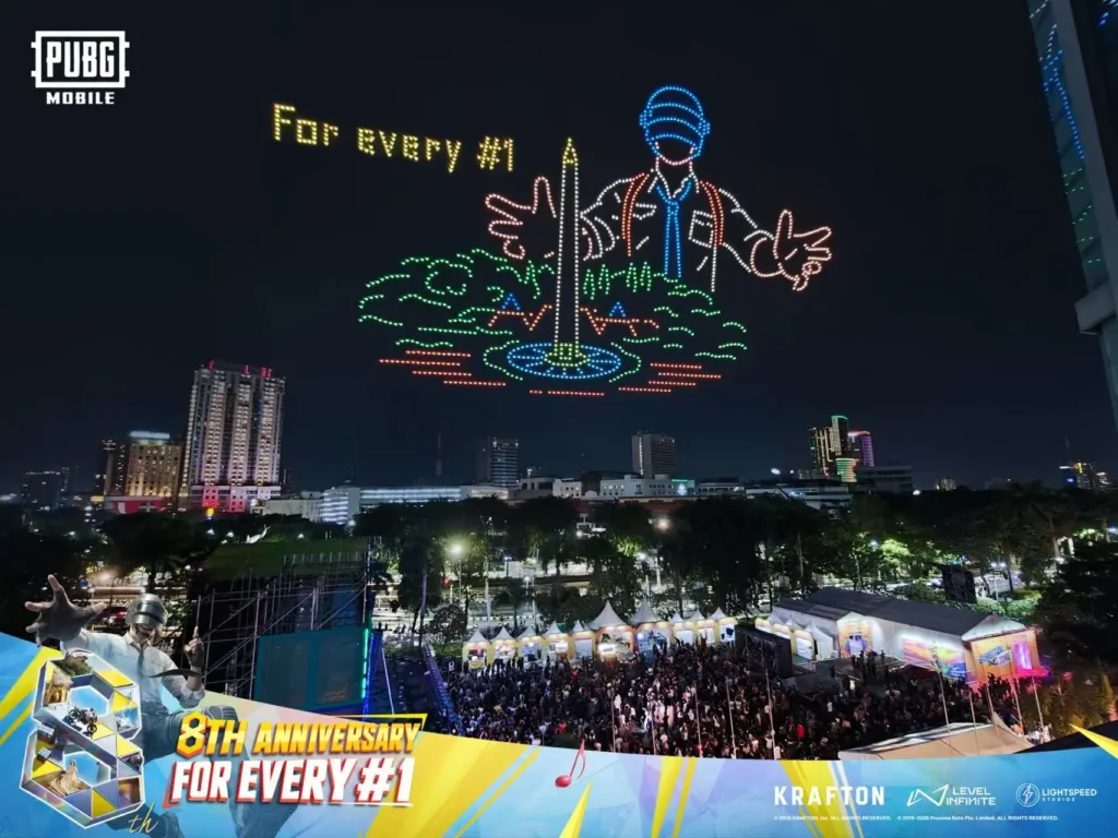 PUBG MOBILE, um dos jogos mobile mais populares do mundo, comemorou seu 8º aniversário com uma série de eventos presenciais em diversas partes do mundo, incluindo uma grande festa nas Pirâmides de Gizé, no Egito, e um show de drones na Indonésia. O evento de aniversário trouxe uma nova dimensão à experiência dos jogadores.