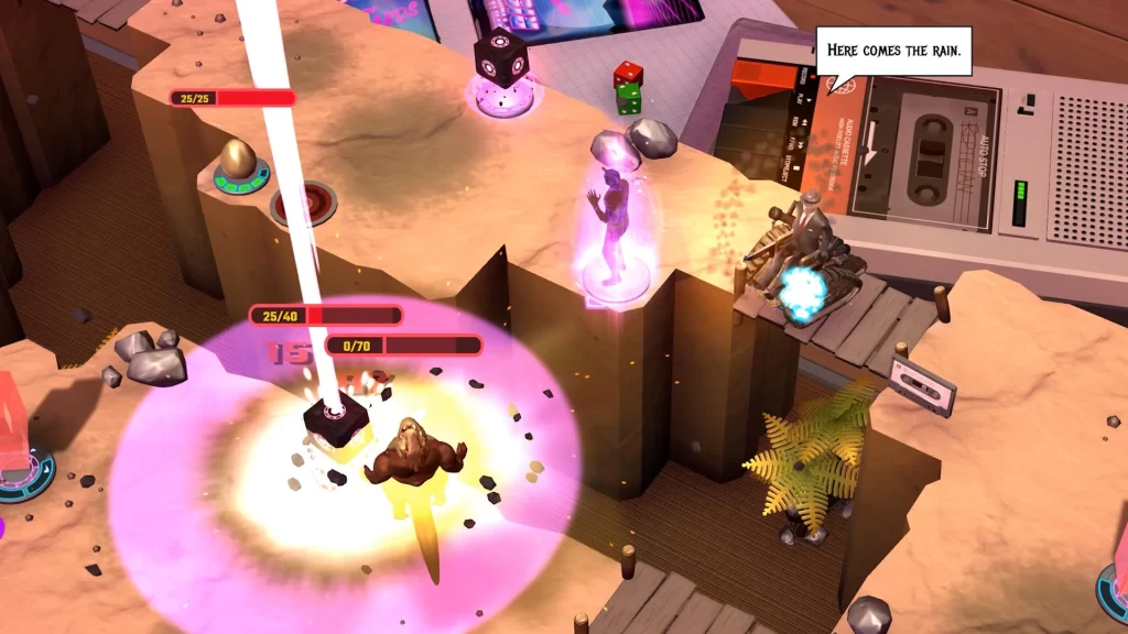 Os jogadores enfrentarão uma variedade de inimigos, incluindo criaturas como o Tri-Canhão, um tricerátopo armado com uma minigun. O jogo promete uma experiência rica em referências históricas, permitindo que os usuários recrutem figuras icônicas como Winston Churchill e Albert Einstein para a batalha.