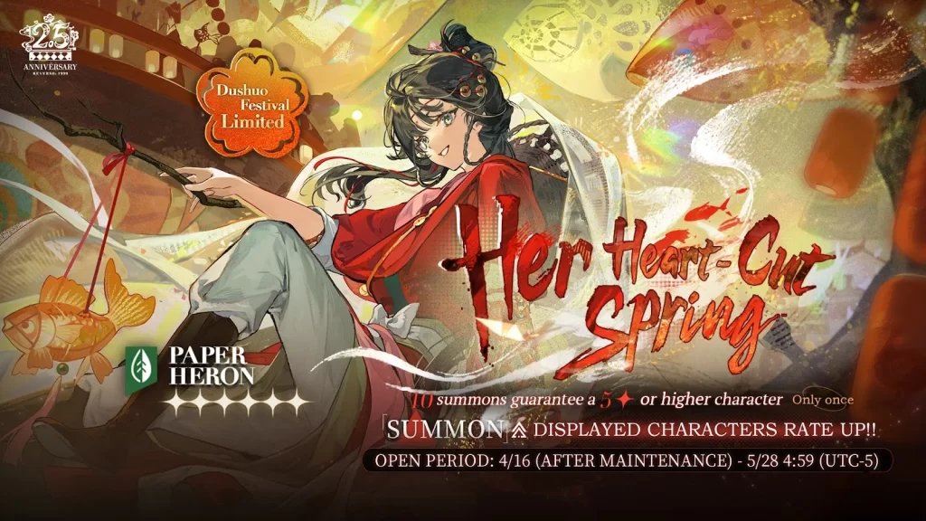 A revelação ocorreu durante uma transmissão ao vivo especial, que apresentou performances em 2D de personagens populares e novos conteúdos. O novo personagem de 6 estrelas, Paper Heron, será disponível através de um banner exclusivo de aniversário.