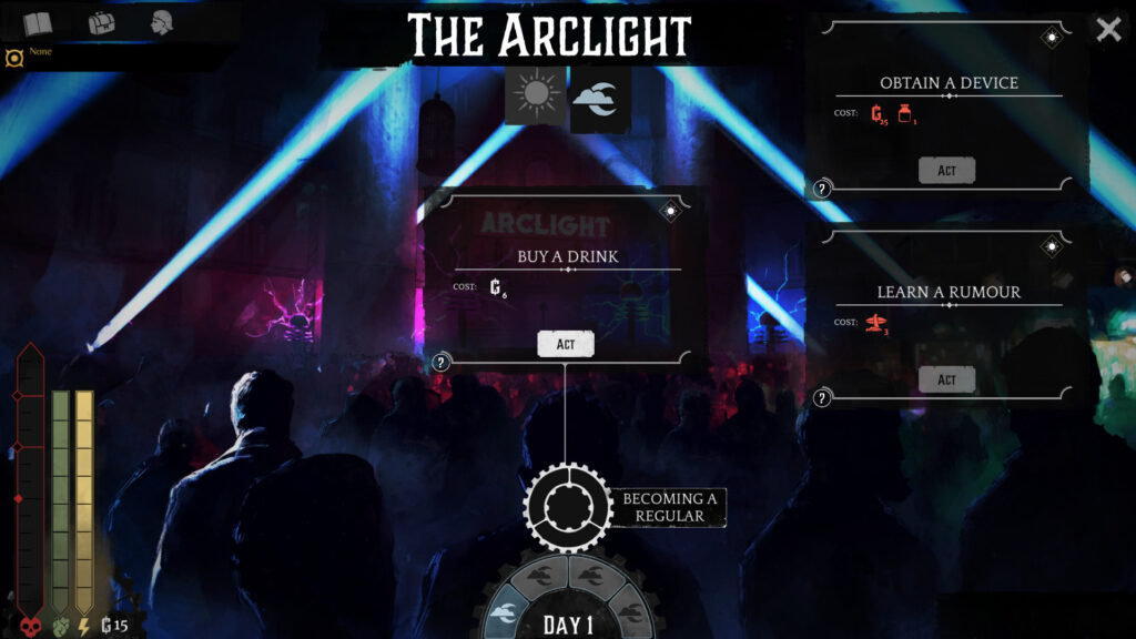 “Duskpunk” é um jogo que desafia você a sobreviver como um soldado fugitivo em uma cidade em ruínas. Gerencie sua saúde, energia e níveis de estresse enquanto explora a cidade de Dredgeport, do submundo aos palácios. Desenvolva habilidades, faça escolhas significativas e influencie o destino da cidade e o seu próprio.