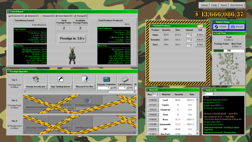 O Sistema de Prestígio no Military Incremental Complex oferece uma experiência de jogo emocionante, repleta de desafios e oportunidades para enriquecer virtualmente. Aproveite as novas funcionalidades e mergulhe nesse mundo de estratégia e lucro. Não perca essa chance de se tornar um magnata das armas!