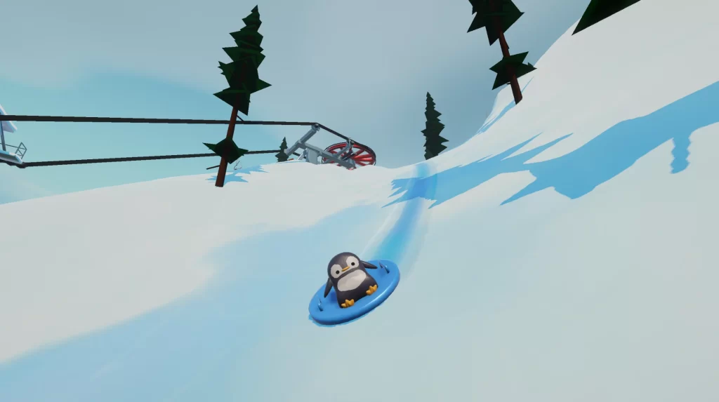 Desenvolvido por Max, um desenvolvedor solo, Sledding Game permite que até 30 jogadores se divirtam em um ambiente de resort de esqui. O jogo é conhecido por suas físicas de ragdoll e pela interação social, onde os jogadores podem se comunicar através de chat de proximidade.