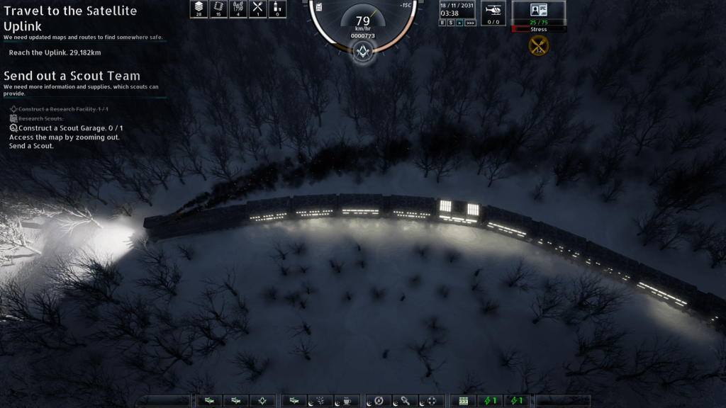 Os jogadores podem construir novos vagões e equipá-los com instalações para sustentar a vida, produzir recursos e pesquisar tecnologias vitais, maximizando a produtividade à medida que o Frostliner cresce.