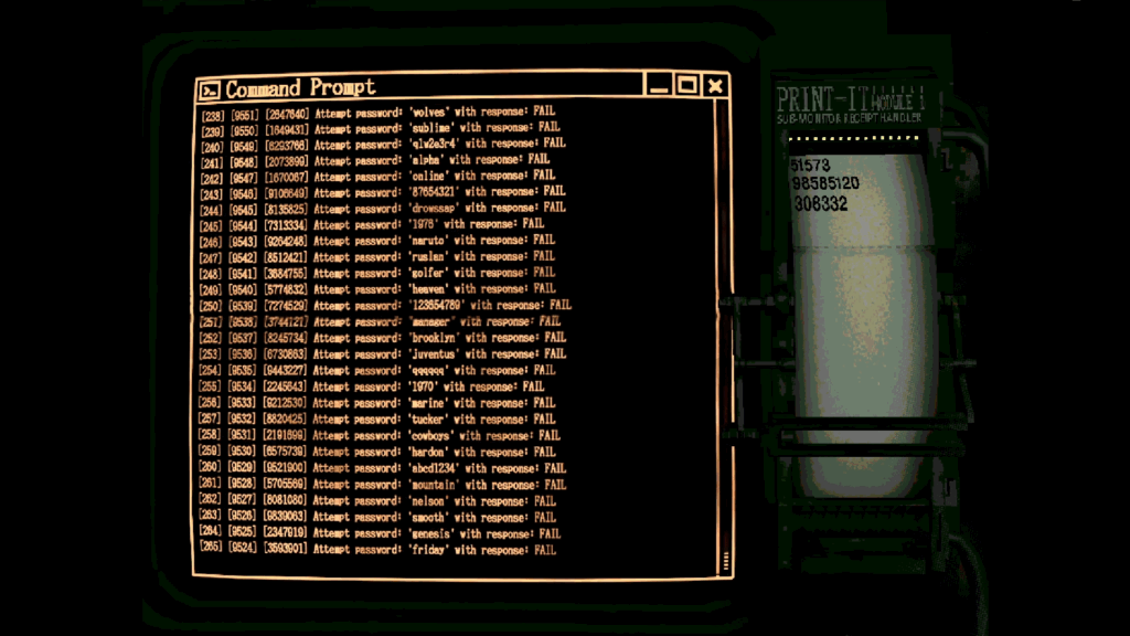 O jogo apresenta interações de linha de comando táteis e cruas, controladas pelo teclado, quebra-cabeças cerebrais de hacking de terminais e uma narrativa que induz à ansiedade. Tudo isso permeado pelo estilo audiovisual distópico e low-fi característico de Klubnika, que proporciona uma experiência altamente atmosférica e eletrizante, na qual o medo se instala a cada toque de tecla.