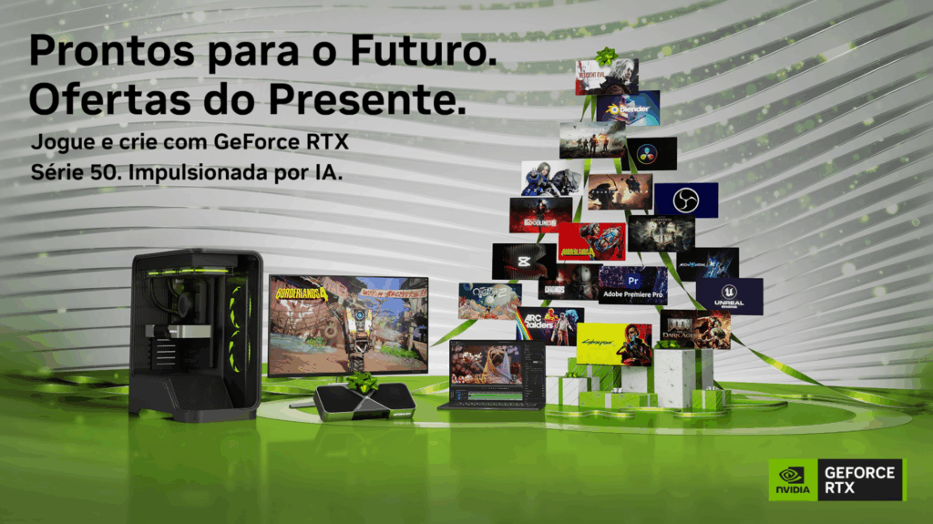 A NVIDIA está oferecendo descontos de até 40% em placas de vídeo GeForce RTX, notebooks e desktops. Essa é a oportunidade perfeita para garantir um upgrade e desfrutar de visuais impressionantes, responsividade competitiva e desempenho de alto nível para os jogos e aplicativos do futuro.
