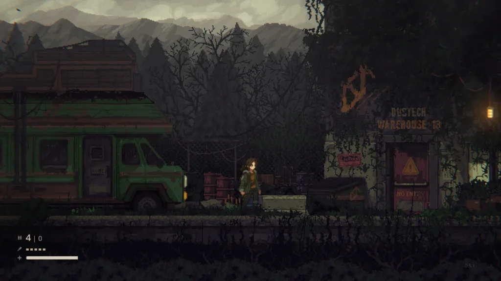 Inspirado por clássicos dos anos 90, The Road of Dust and Sorrow apresenta pixel art artesanal que retrata um mundo em ruínas. O jogo busca evocar uma sensação de “cozy-horror”, mesclando beleza e desolação em cada cenário.